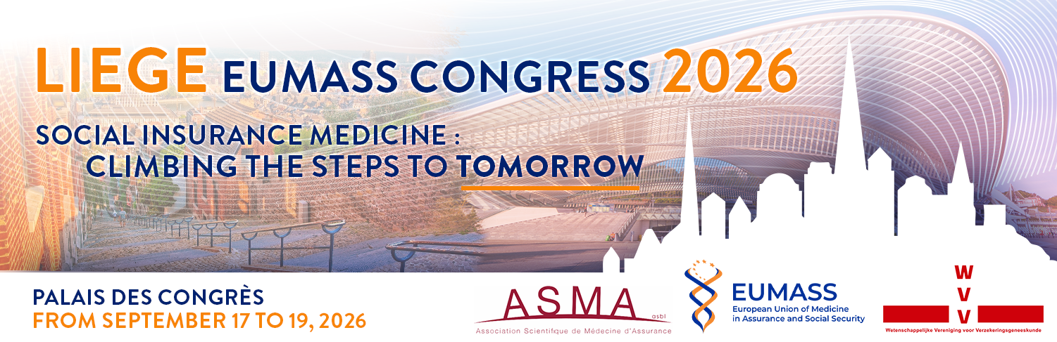 Vabljeni k sodelovanju na 25. kongresu Evropskega združenja medicinskih izvedencev v zavarovalništvu in socialnem zavarovanju (EUMASS), katerega članica je tudi Slovenija (ZZZS). Kongres bo potekal od 17. do 19. septembra 2026 v Liègu, Belgiji.