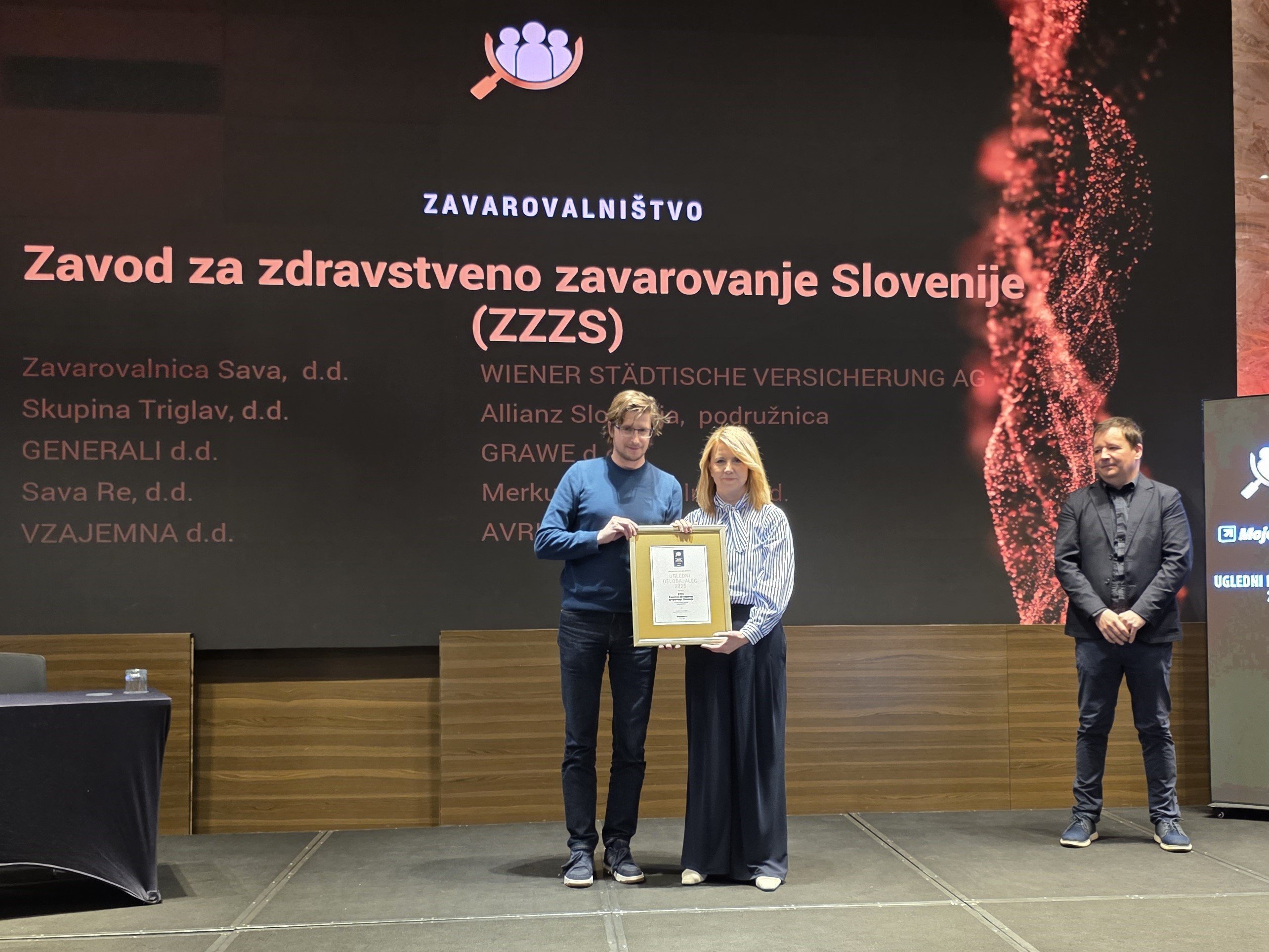 Zavod za zdravstveno zavarovanje Slovenije je prejel naziv Ugledni delodajalec 2025 na področju zavarovalništva in bil izglasovan med top 10 uglednih delodajalcev v Sloveniji.